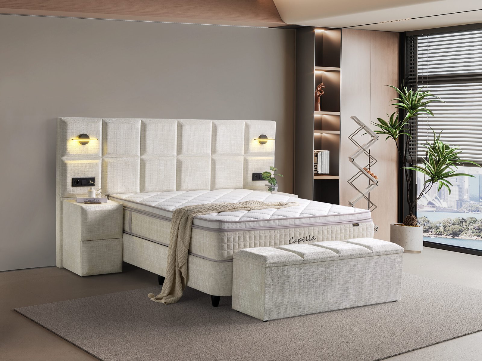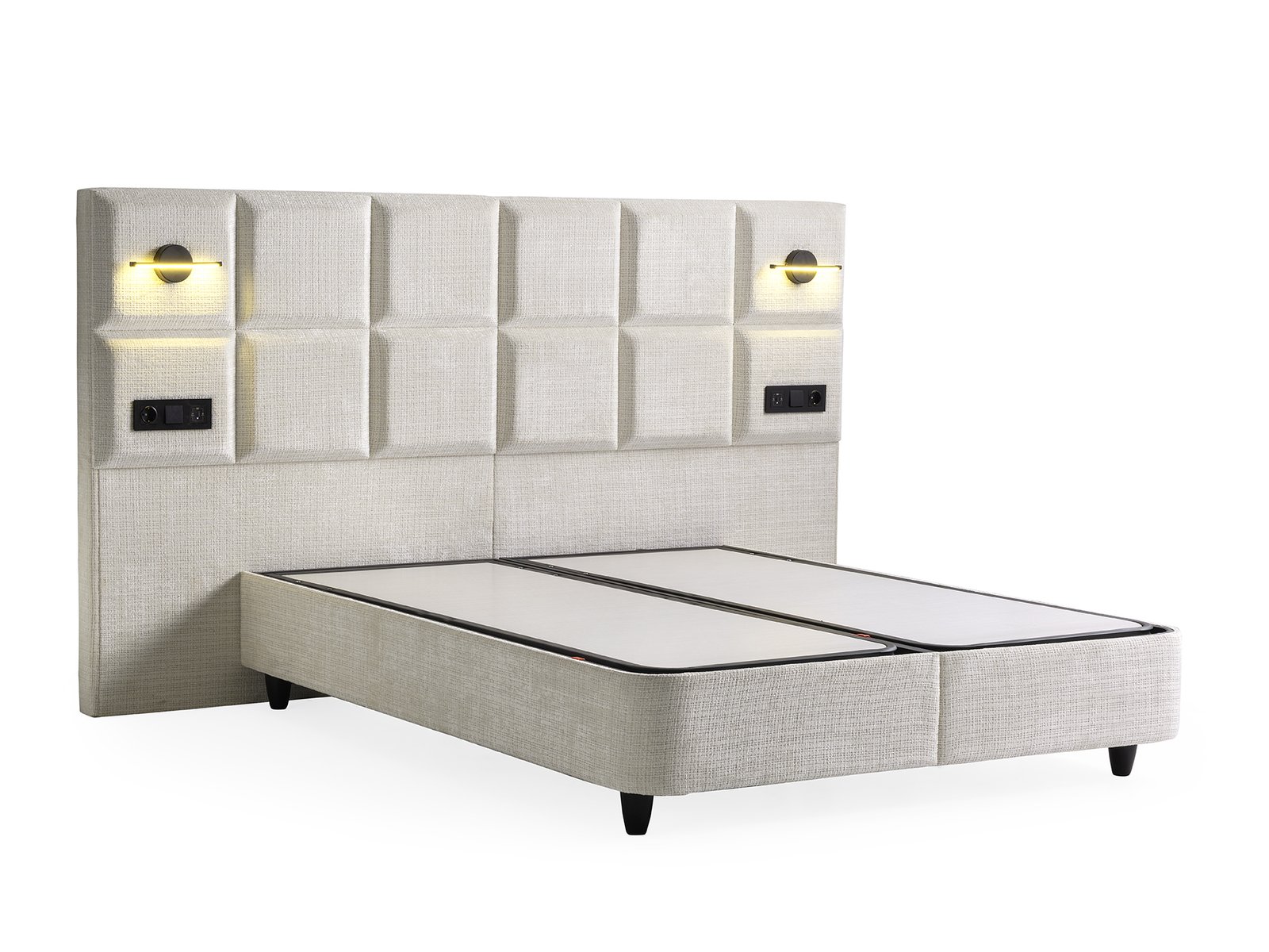 | Box / Onderbouw | Metalen frame met zacht gestoffeerde box — hoogte 28 cm. |